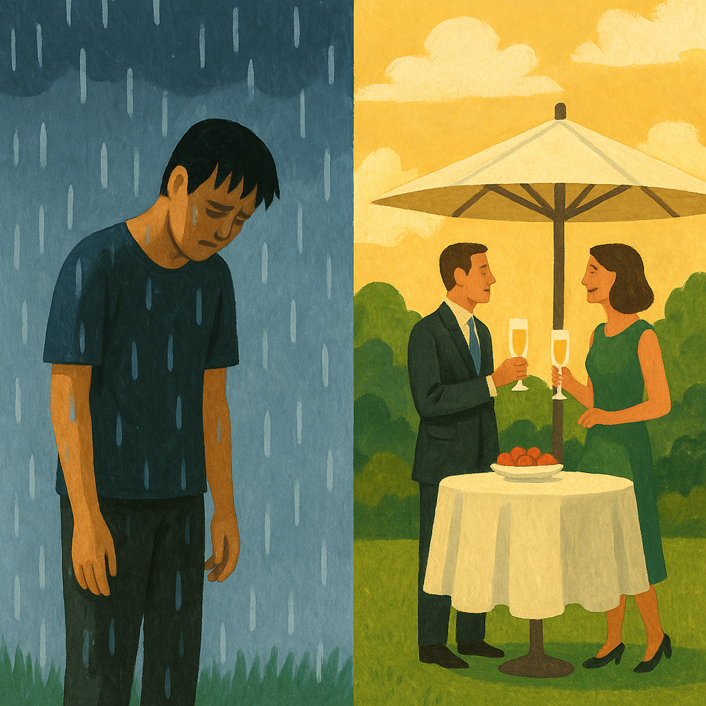 비가 오면 부자 집은 정원 파티를 즐기고, 가난한 집은 물난리